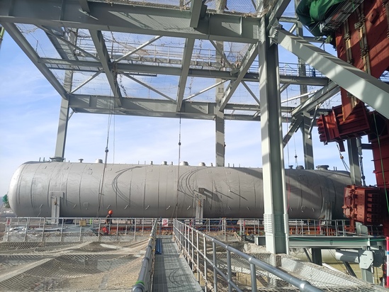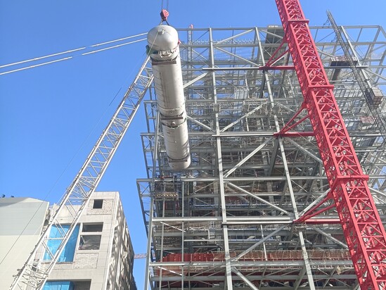 2025年12月6日,甘肃华电金昌2×1000兆瓦调峰煤电项目2号机组除氧器吊装顺利完成。本次汽机大件设备除氧器的顺利就位,标志着项目汽机专业安装工作进入实质性推进阶段,为后续管道连接创造了关键条件。 本次吊装的除氧器是电厂热力系统中的核心设备,全长25米,重量达124.2吨,主要用于高效去除锅炉给水中的溶解氧,对保障机组长期安全、经济、稳定运行具有重要意义。本次吊装采用500吨履带式起重机(主吊)+140吨塔式起重机(辅吊)双机配合进行作业,全程经过起吊、空中平移、姿态调整与精准落位等环节,下午15时,设备平稳就位于锅炉房K1-K2轴之间的46.9米层的预定基座轨道上。 项目团队以“建精品工程,创国家优质工程”为目标,实施全过程精细化管控。吊装前,组织开展专项安全技术交底与起重机械联合检查,确保施工人员掌握全部操作要领;吊装过程中,各方协调有序、指令清晰,实现吊装轨迹精准控制与落地误差毫米级管理。 作为保障区域能源安全、提升电网调节能力的重要工程,此次除氧器的顺利就位为后续安装工作全面展开奠定了坚实基础。接下来,项目团队将加快推进管道、阀门、仪表及附属系统的安装与连接工作,持续贯彻“优质、准点、安全、高效”的建设方针,全力确保项目按期投产,为增强地区电力供应保障贡献力量。 | |