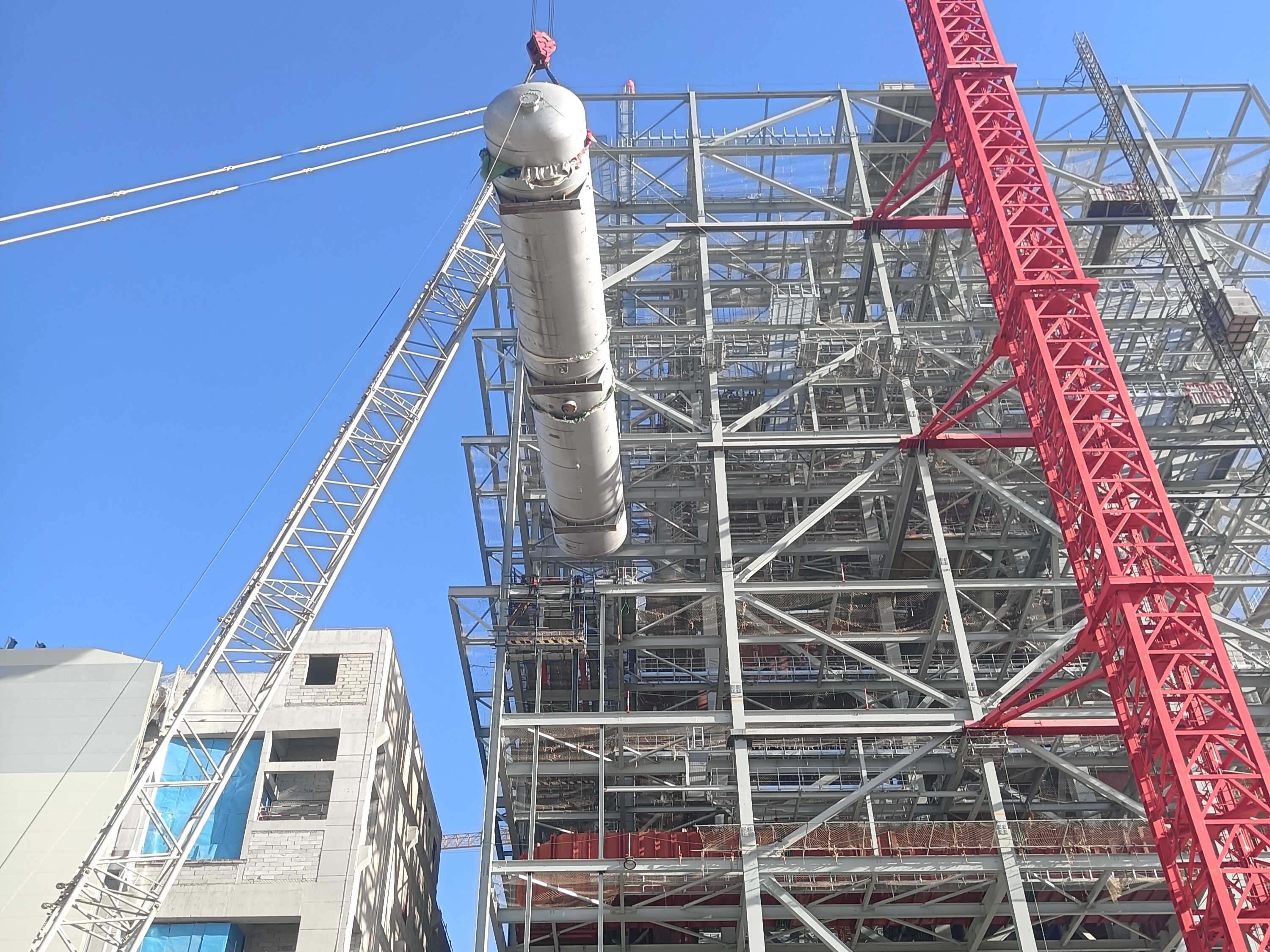 金昌调峰煤电项目2号机组除氧器吊装顺利完成 | |