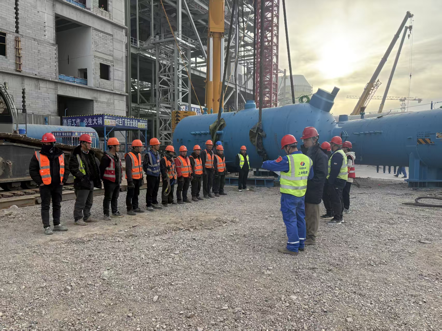 2025 年 11 月 11 日,甘肃金昌调峰煤电项目 2 号机组 #0、#3 两台高压加热器吊装作业顺利完成,标志着项目 2 号机汽机安装工程正式迈入高效推进阶段。